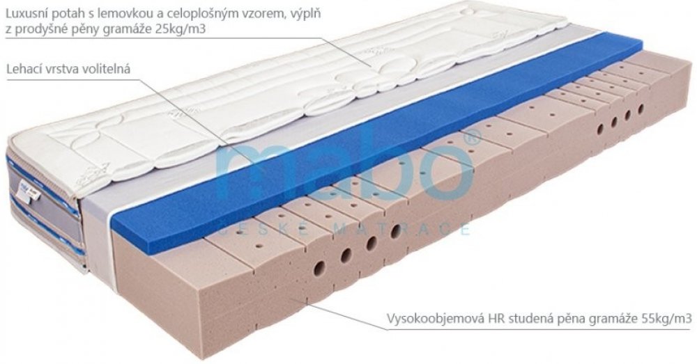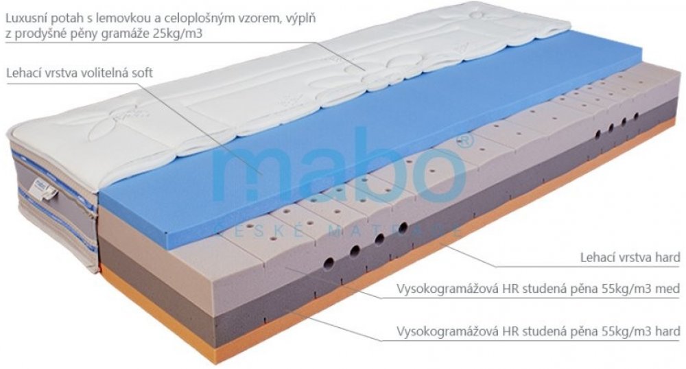 MABO pěnové 7 zón 150 kg tuhost 3 - 4 středně tvrdá / tvrdá studená pěna (HR pěna) chladivé