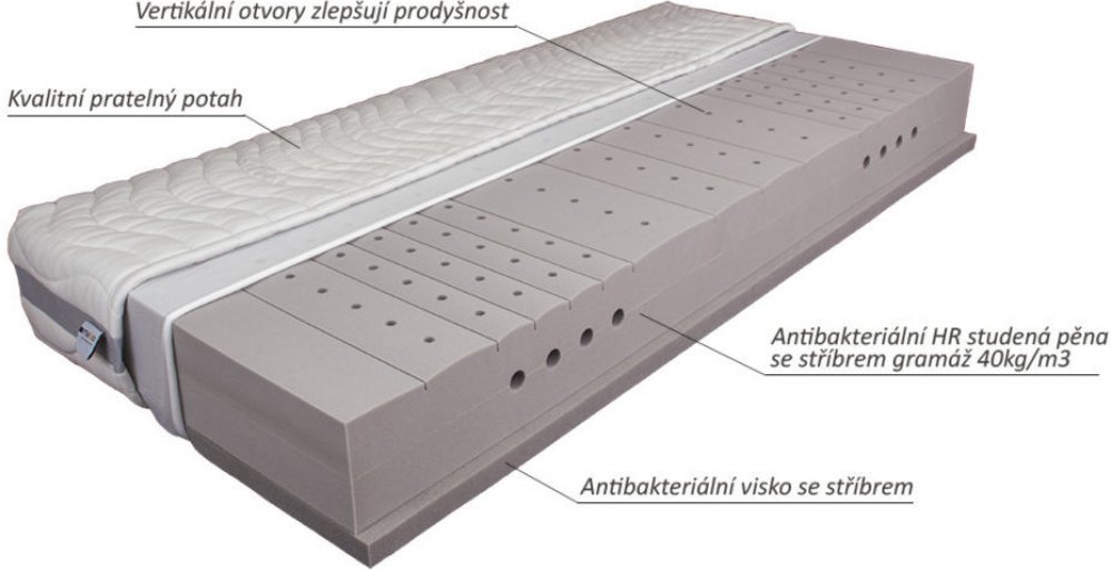 velmi prodyšná viskoelastická pěna antibakteriálním efektem SILVER 45 kg/m3 – (šedá)