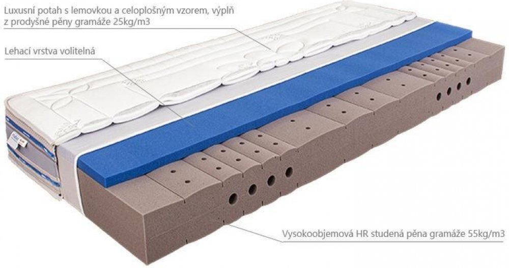 SOFT - stupeň tuhosti 4 ze 6ti (tuhá) - pěna HR 55 a pěna HR Eucafeel 45, nosnost 120 kg