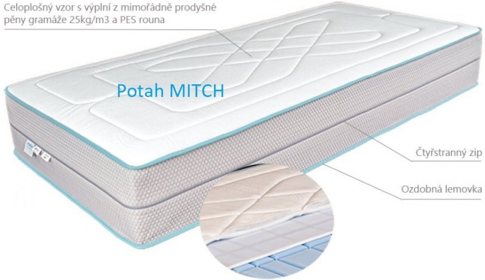 - příplatkové potahy: Mitch, Silver, Bambus, Seacell Visco, Jednorožec - Silver/Bambus a M-Phone - Silver/Bambus - zvolte v konfigurátoru.