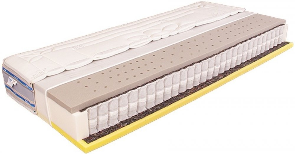 Oboustranná tvrdost pružinové matrace, která Vám zajistí pohodlný spánek. Matrace Mabo Venta MEDIUM 85 x 200 cm Kvalitní pružinová matrace s jádrem z taštičkových pružinek (380 ks pružinek). Pro lehací vrstvy jsou použity antibakteriální pěny gramáže 40 kg/m3 s výškou 3 cm a antibakteriální viscoelastická-líná pěna s technologií SILVER-IONS s účinným termoregulačním účinkem s výškou 3 cm. Tyto leh...