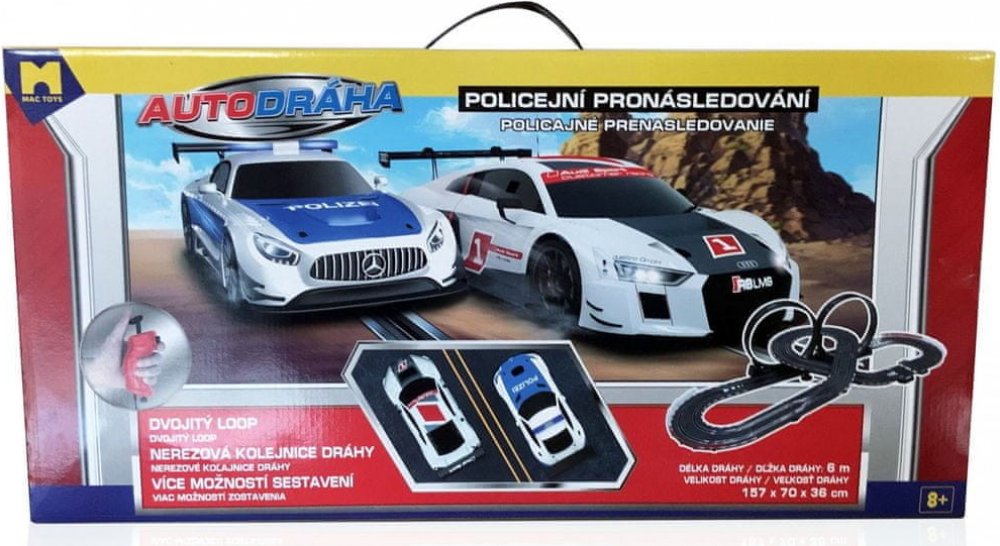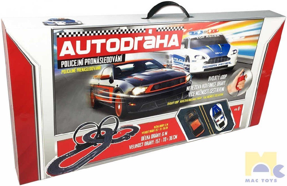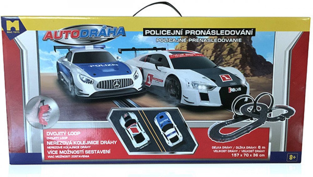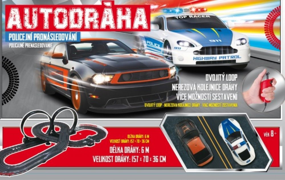 Autodráha policejní honička,délka 6 metrů, dvojitý LOOP, nerezové kolejnice, více možností sestavení.
