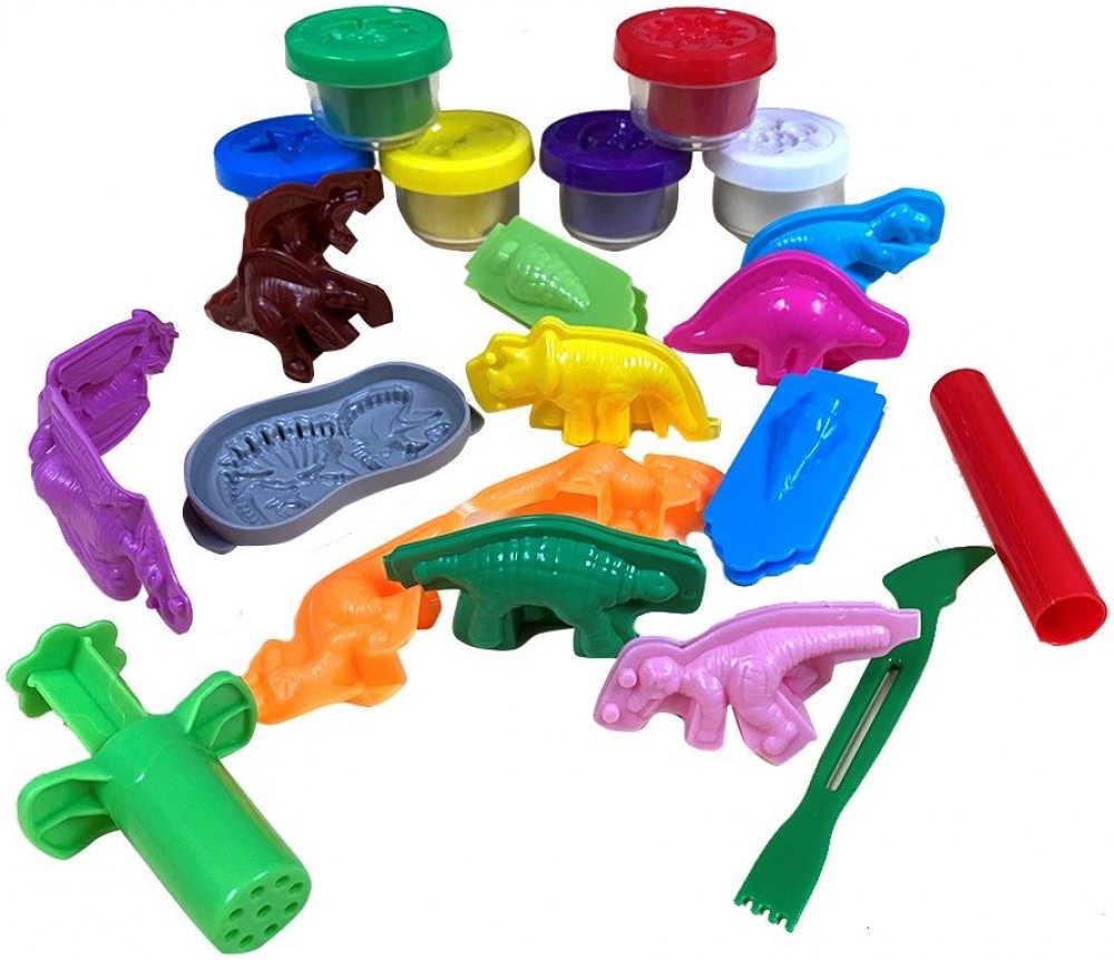 Obsah balení: 4 formičky na dinosaury, 4 modelíny, 2 formy, 3x příslušenství