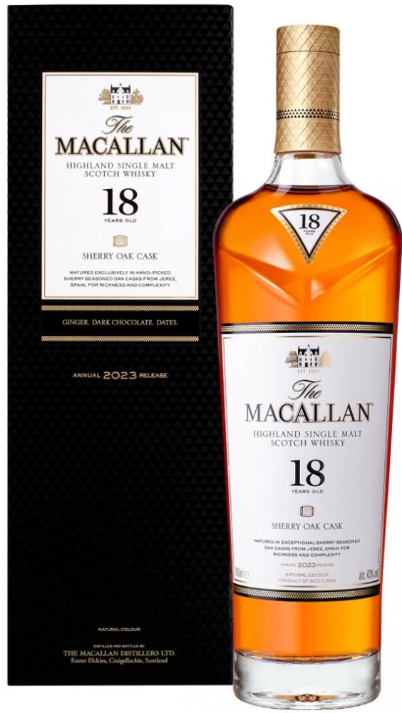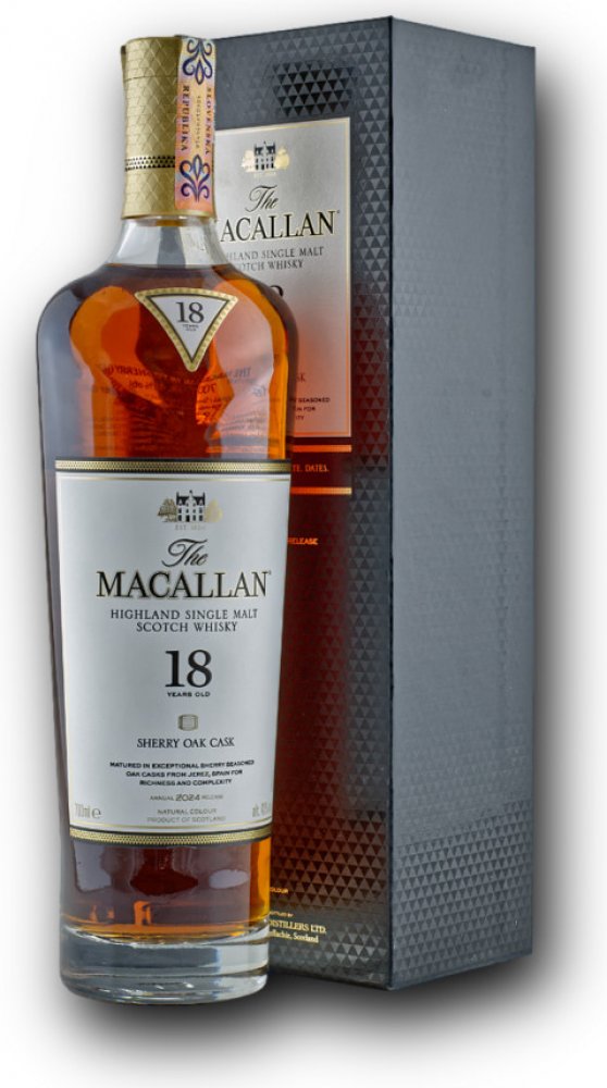 Macallan 18 Y.O. Sherry Oak je ikonická single malt whisky, která ztělesňuje luxus a mistrovství skotské palírny The Macallan. Celých 18 let zraje výhradně v pečlivě vybraných evropských dubových sudech po sherry z Jerezu, což jí propůjčuje bohatou hloubku chutí a jedinečný charakter. Každý doušek přináší intenzivní tóny sušeného ovoce, tmavé čokolády a koření, doplněné nádechem pomerančové kůry a jemnou dubovou stopou. Dlouhý, hřejivý závěr odhaluje elegantní spojení sherry sladkosti s ušlechtilou dřevitostí. Tato whisky je symbolem precizního řemeslného zpracování a dokonalé práce s dubovými sudy. Macallan 18 Y.O. Sherry Oak je určen pro opravdové znalce a sběratele, kteří ocení hluboký charakter této legendární whisky. Perfektní volba pro výjimečné okamžiky nebo jako exkluzivní dárek pro milovníky špičkové whisky.