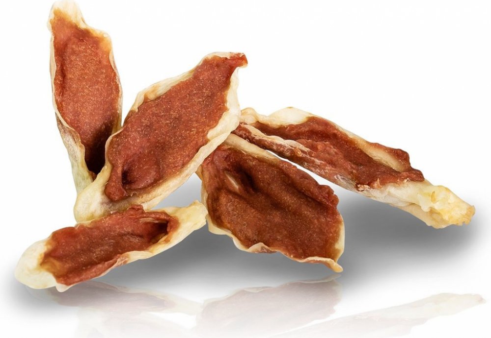 Kachní ucho s kachnou je ideální volbou pro psy se známou potravinovou alergií. Často se psi se střevními problémy také musí vzdát vepřového nebo hovězího kousátka. Na rozdíl od nich - ucho od králíka je šetrné k žaludku.
