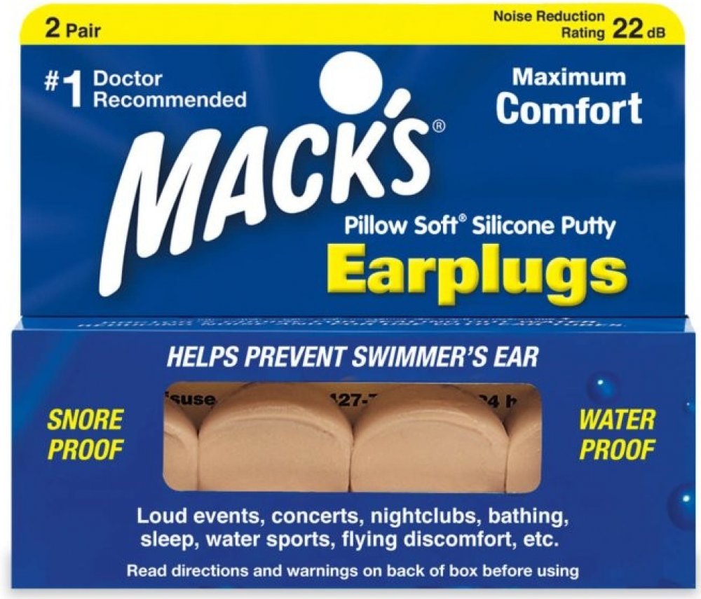 Se špunty Mack's Snoozers® vaše uši zažijí ultimátní pohodlí. Ucpávky jsou vyrobené z tvarovatelného silikonu, který se přizpůsobí unikátnímu tvaru každého ucha. Špunty Mack's je značka č. 1 doporučována lékaři v USA pro dobrý noční spánek, pokud spíte s chrápajícím partnerem / partnerkou. Špunty sedí v uších mnohem pohodlněji a poskytují lepší těsnění než špunty na zakázku. Propagují kvalitnější a klidnější spánek. Zachránce manželství.