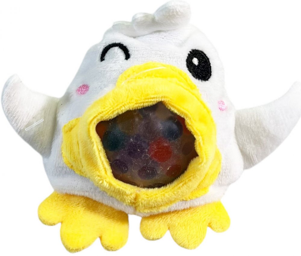Plyšové mačkací zvířátko ve s antistresovým míčkem uvnitř je velké 10 centimetrů. Na výběr máte hned ze čtyř druhů zvířátek - žába, kuře, slepice a husa.