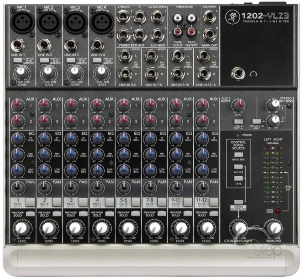 Mackie 1202-VLZ3 je 12-kanálový mixážní pult, který se vyznačuje kvalitou vlastní firmě Mackie. Tento mixážní pult proto nabízí velký headroom, nízkou úroveň šumu, kvalitní mikrofonní předzesilovače a účinný ekvalizér.