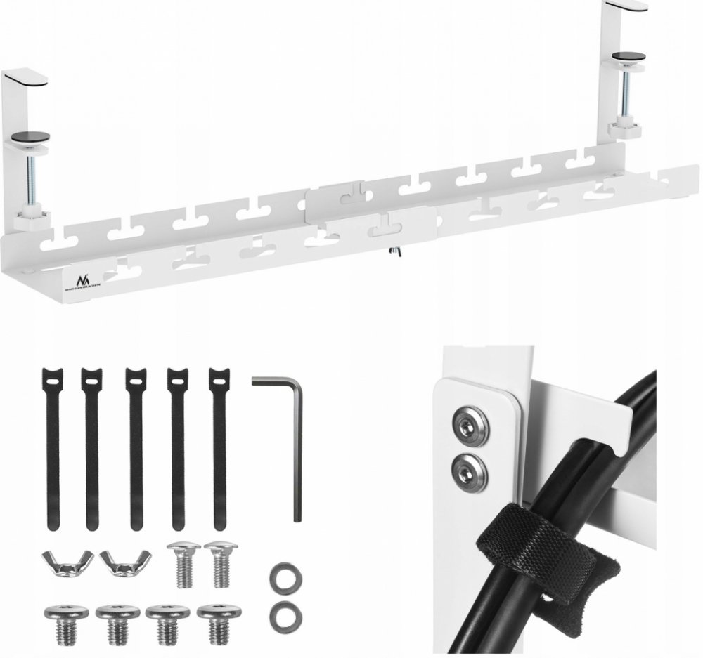 Podstolový organizér na kabely Maclean, maximální zatížení 5 kg, max. 728 mm, bílý, MC-103 W
