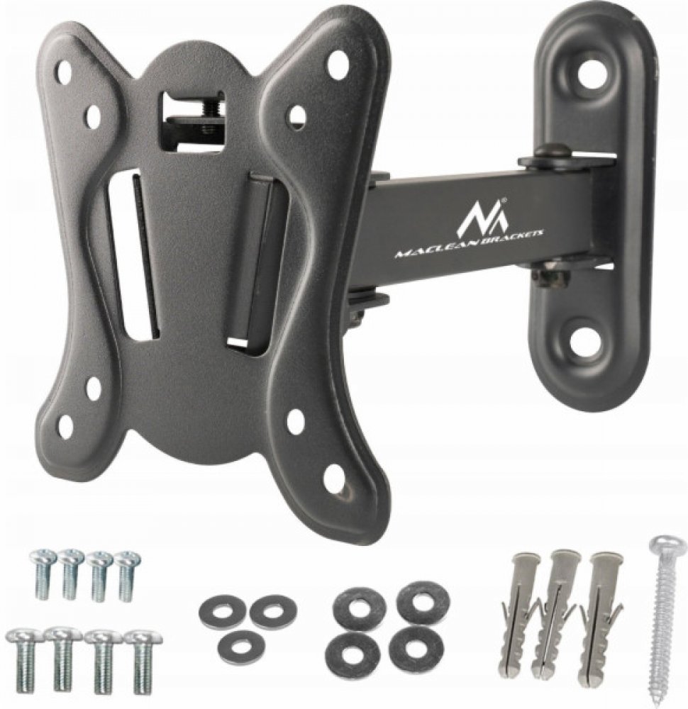 Maclean MC-416 TV Monitor Wall Mount 13"-32" 30kg Tilt Rotate max. VESA 100x100 Black Powder Coating LED OLED LCD Universal Bracket Holder