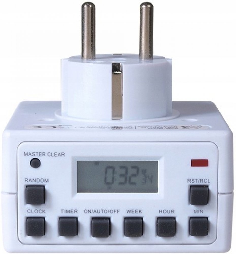 Digitální časový spínač, pomocí kterého můžeme nastavit dobu zapnutí a vypnutí elektrických zařízení. Může ovládat např. provozem elektrického vybavení akvária nebo terária, provozem ohřívačů vody, osvětlení a mnoha dalších zařízení.
