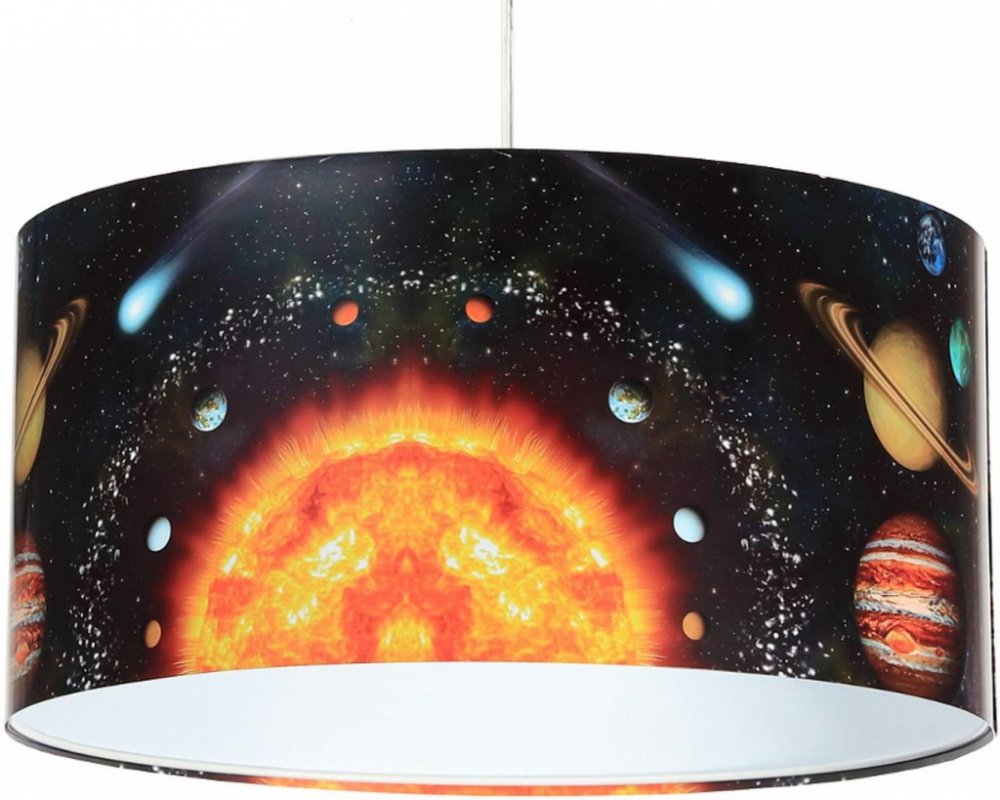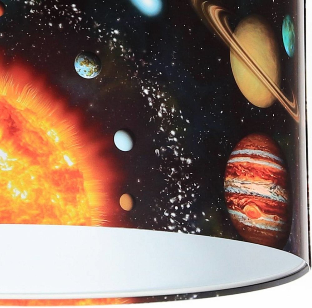 Závěsné svítidlo Space může v dětském nebo teenagerském pokoji navodit pocit skutečného vesmíru, protože podněcuje představivost svým fotografickým potiskem. Použitý latexový potisk neobsahuje škodlivé látky a je zcela neškodný pro životní prostředí. Ani při dlouhodobém používání neztrácí motiv nic ze své barevnosti, protože latexový potisk je odolný vůči UV záření.