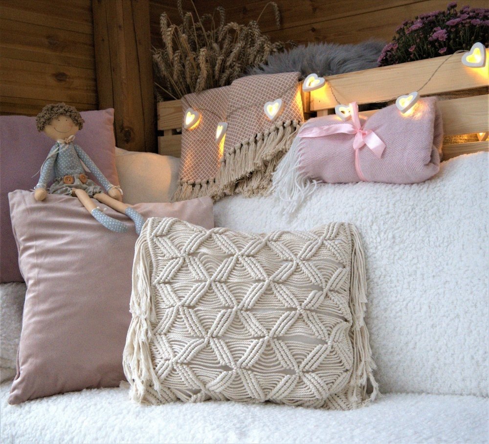 Možností je spoustu, ať už se stanou polštářky Macramé zátiším ve Vaší pergole, kde spolu se zahradním nábytkem vytvoří jedinečnou atmosféru anebo polštářky Macramé vyzdobíte společenskou místnost ve Vaší chalupě a rázem budete mít pocit jakoby se sama rozsvítila. Ať tak či tak polštářky Macramé mají svůj cíl jediný a to, zpříjemnit Váš čas a vytvořit z něj radostné vzpomínky, které si přejeme zažívat stále dokola.