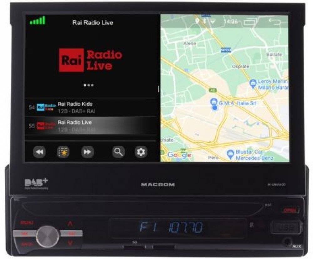MACROM M-AN700DAB je multimediální jednotka s operačním systémem Android a vestavěným DAB tunerem. 2DIN velikost s 7" kapacitním displejem a vestavnou hloubkou pouze 4cm, umožňuje instalaci do řady automobilů, kam doposud nebylo možné instalovat jednotku s touto velikostí monitoru.