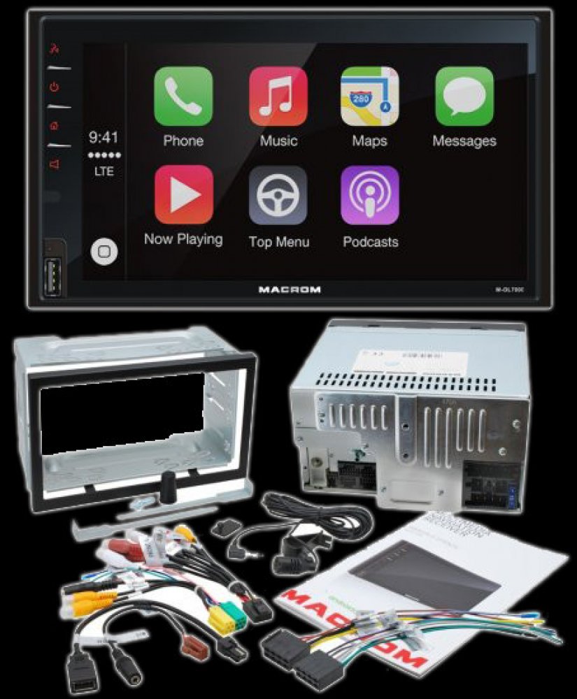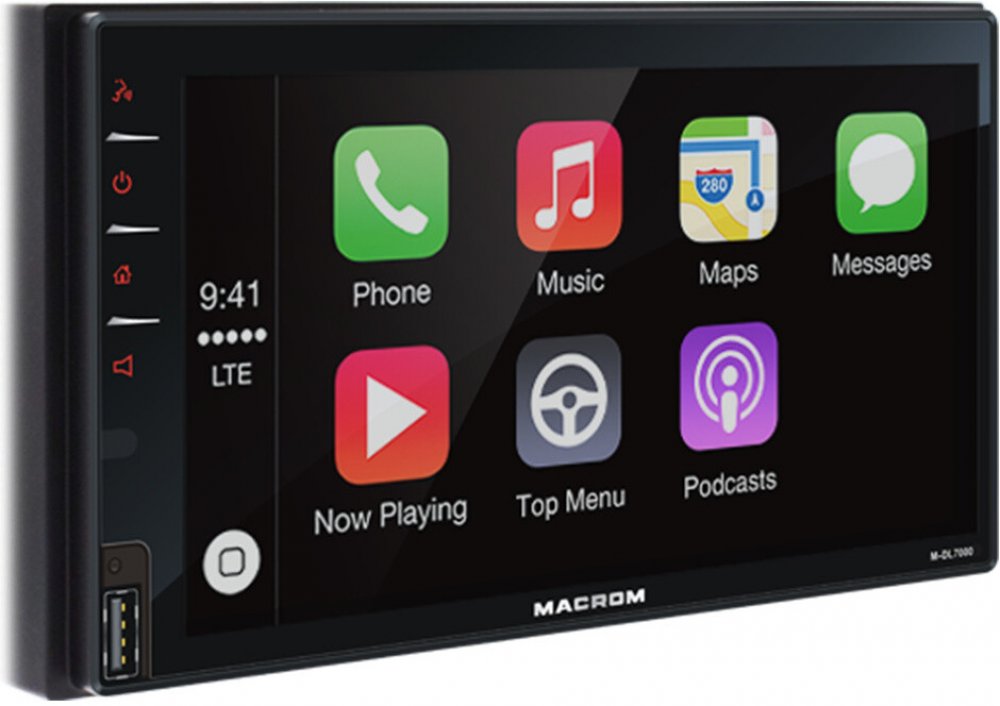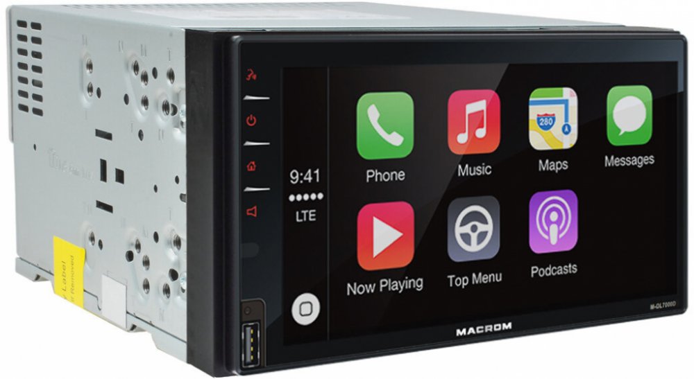 MACROM M-DL7000D je multimediální jednotka podporující funkce Apple CarPlay, Android Auto. DAB+ vestavěným tunerem, USB zadním a předním vstupem. Přístroj je vybaven kapacitním dotykovým monitorem 6,8 palců, vstupem pro couvací kameru (po zařazení zpátečky), vstupem pro ovládání z volantu. MACROM obsahuje Hands free sadu s externím mikrofonem. Pomocí 2DIN instalačního rámečku lze umístit do většiny typů automobilů.
