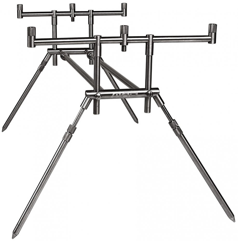 Kompaktní stojan z nerezové oceli s dvojitou páteří, který je vhodný na 2 nebo 3 pruty. Hrazdy se dají odšroubovat a následně použít s vidličkami. Otočné zámky redukují riziko zachycení vlasce za šroub na minimum (na celém stojanu jsou pouze 4 šrouby). Dodává se v praktickém obalu. Rozměry (nejmenší možná velikost): 28 x 38 x 65 cm.