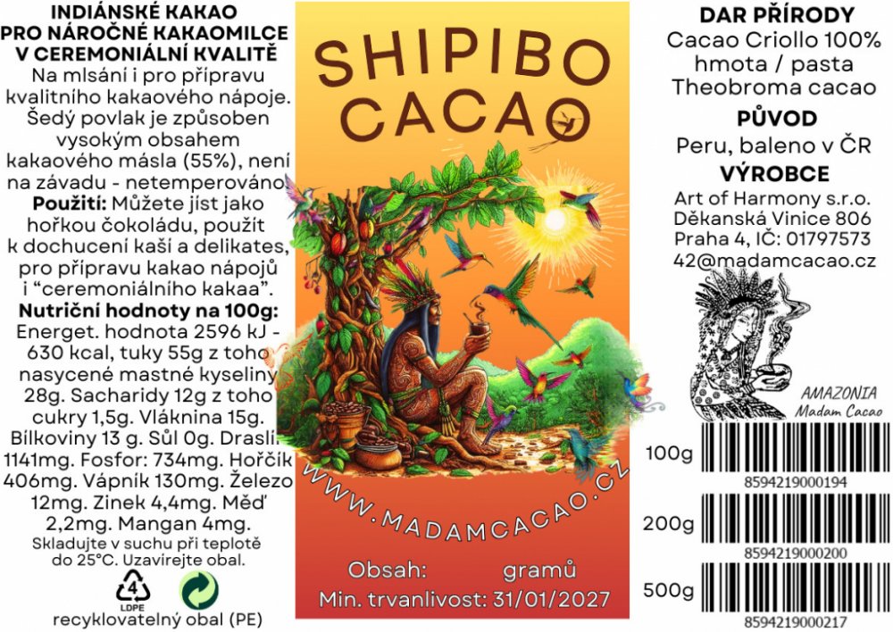 Madam Cacao Amazonia Kakaová hmota Criollo, Shipibo 500 g