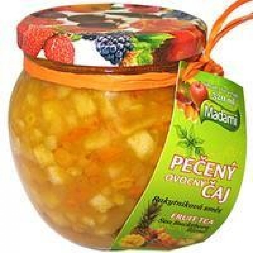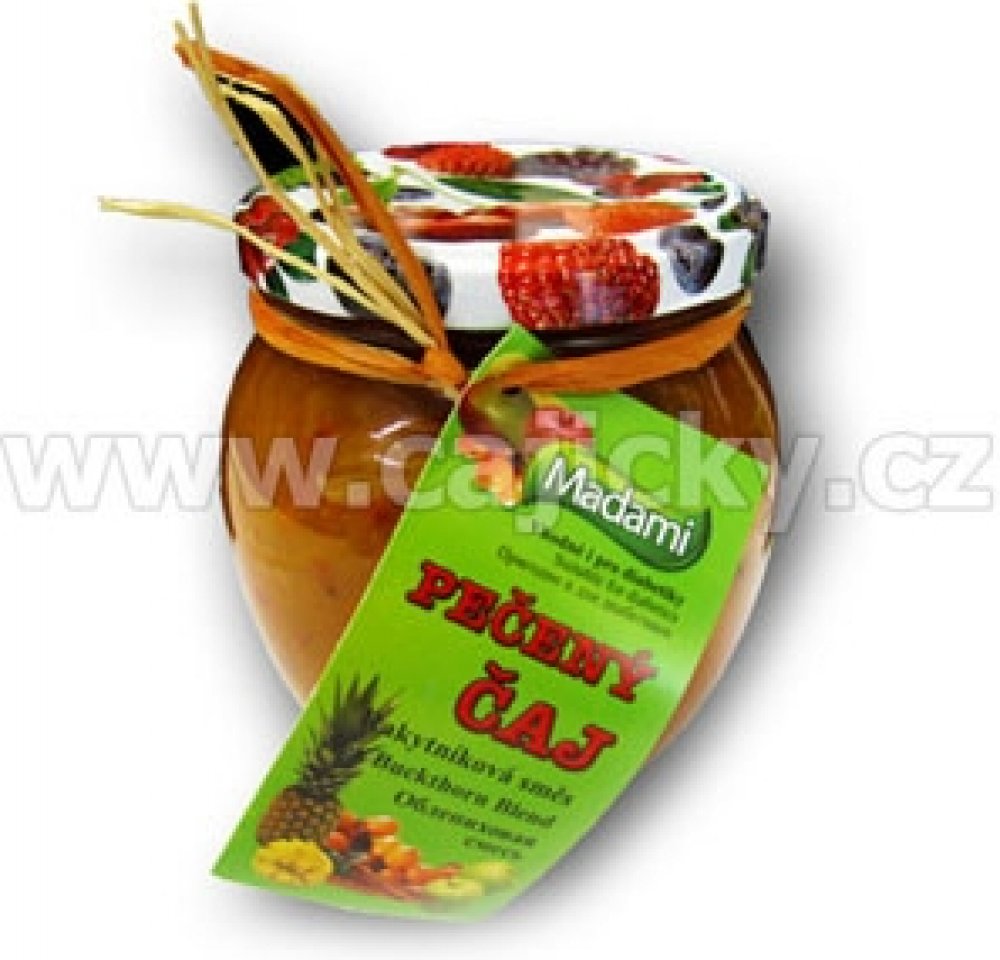 Pečený čaj je zárukou vynikající ovocné chuti, kterou je možno docílit pouze tradiční přírodní metodou, která využívá ty nejlepší vlastnosti ovoce a pečlivě vybraného koření. Pečené čaje jsou bez přídavku cukru vhodné i pro diabetiky s ohledem na cukr obsažený v použitém ovoci. Příprava: