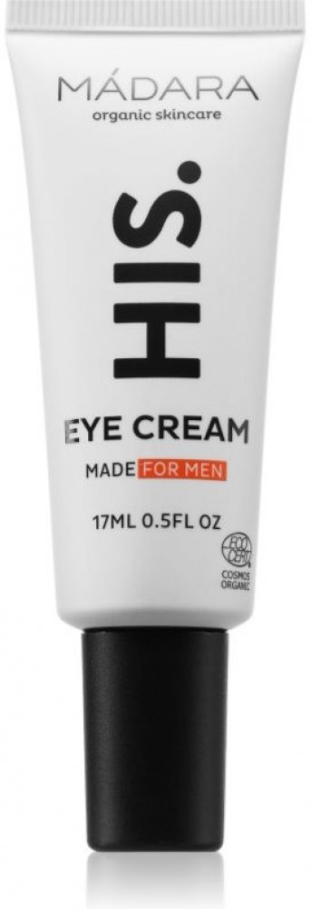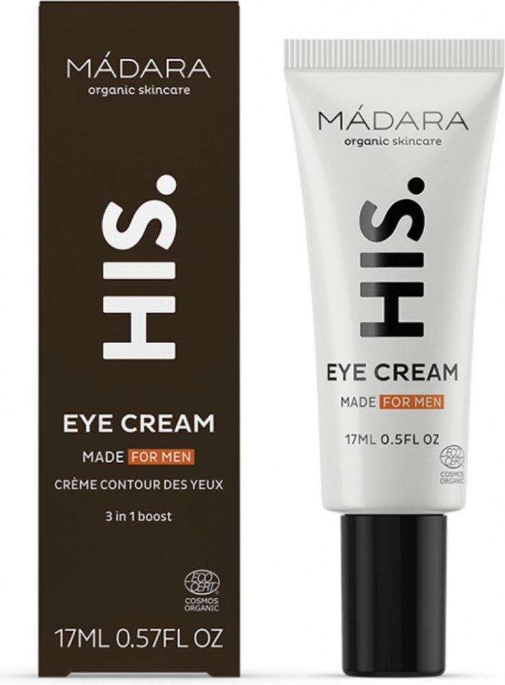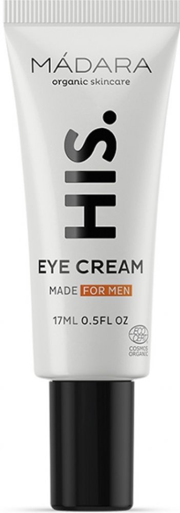 MÁDARA HIS, 17 ml, Oční péče pro muže, Oční okolí je velmi citlivou oblastí, jeho kůže mimořádně tenká a křehká a díky tomu také náchylnější k projevům únavy a stárnutí. Vyžaduje proto i speciální péči se složením a konzistencí navrženými přesně pro její potřeby. Oční krém MÁDARA HIS si poradí se specifickými problémy očního okolí. Dodá pleti kolem očí potřebnou výživu a hydrataci, zlepší její kvalitu a navrátí jí vitalitu i svěží, odpočatý vzhled. Vlastnosti: hloubkově hydratuje a vyživuje okolí očí vyhlazuje linky a jemné vrásky redukuje oční váčky a kruhy pod očima Složení: veganský produkt Jak používat: Přípravek naneste na čistou pleť očního okolí a lehce vklepejte konečky prstů.