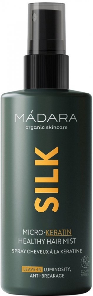 Micro-Keratin Healthy Hair Mist od MÁDARA je inovativní bezoplachová péče pro vaše vlasy. Posiluje je, zajišťuje jejich hladkost a opětovný lesk. Napravuje poškození vláken Mikrokeratinová mlha pro zdravé vlasy je obohacena o hydrolyzovaný keratin, výtažek z řas a kyselinu mléčnou. Toto složení redukuje třepení konečků a lámání. Matné a lámavé vlasy jsou opraveny. Po ošetření vypadají hladší a pružnější. Můžete je opět snadněji upravovat. MÁDARA doporučuje tento přípravek také pro velmi suché, matné nebo krepaté vlasy. Použití je velmi snadné: kúra se nastříká na umyté, ještě vlhké konečky a délky. Jelikož se jedná o přípravek bez působení, není třeba nic oplachovat. Vlasy můžete upravovat jako obvykle. Lahvička má objem 90 ml a díky jemnému rozprašovači je velmi úsporná. Tekutina neobsahuje parabeny, alkohol, silikon ani lepek. Žádná ze složek nebyla při vývoji mlhy Micro-Keratin Healthy Hair Mist testována na zvířatech. MÁDARA nechala tuto vlasovou péči certifikovat nezávislými organizacemi na ochranu zvířat.