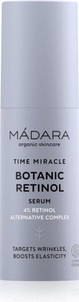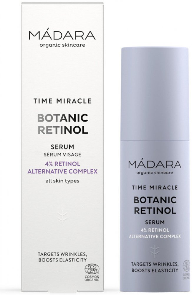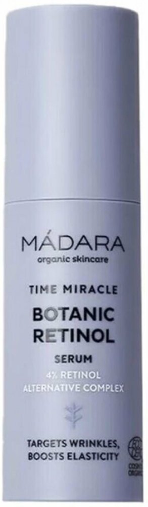 Toto průlomové sérum obsahuje alternativní komplex 4 % retinolu na rostlinné bázi, který bojuje proti známkám stárnutí stejně účinně jako syntetický retinol - ale bez negativních vedlejších účinků v podobě podráždění a vysušení. Stimuluje tvorbu kolagenu, čímž obnovuje pružnost, zlepšuje pevnost a minimalizuje výskyt jemných vrásek pro viditelně hladší a pevnější pleť. Omlazující voda ze severské břízy podporuje proces obnovy a regenerace pleti a kyselina hyaluronová zajišťuje hloubkovou hydrataci. Sérum má vyrovnávací účinek na pleť se sklonem k akné, bojuje proti hyperpigmentaci a nečistotám a zlepšuje tak strukturu a tón pleti. Určeno pro všechny typy pleti; dostatečně jemné pro použití na citlivou pleť. Dermatologicky testováno.