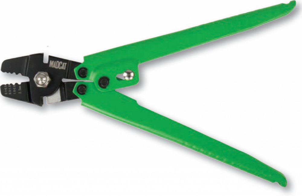 Krimpovací kleště z uhlíkové oceli ideální pro krimpování hliníkových spojek. Obsahují čtyři drážky pro různé velikosti spojek (0,1 až 2,2 mm). Vhodné pro tvorbu přívlačových návazců a návazců pro lov sumců na řekách. Extra dlouhé (25cm).