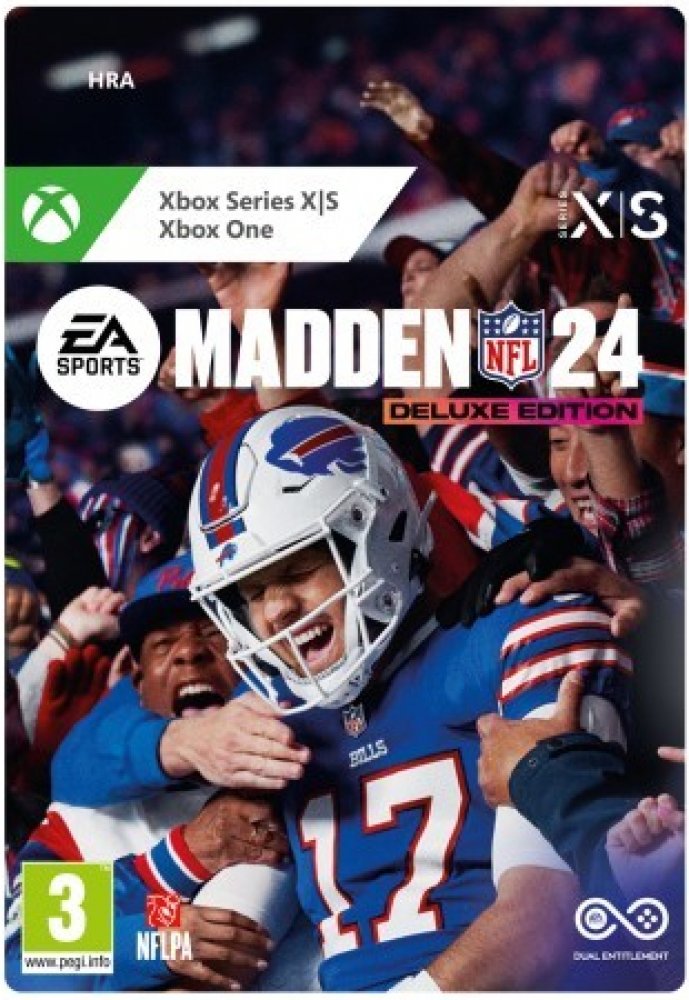 hra pro Xbox Series / Xbox One • simulátor, sportovní • anglická verze • hra pro 1 hráče • hra pro více hráčů • od 3 let • datum vydání 18.08.2023 • kvalita 4K (Xbox Series X) • funkce vibrací • kód ke stažení • edice obsahuje základní hru, Dual Entitlement, předmět Josh Allen Elite Player, výběr ze 2 strategických předmětů (1 ofenzivní a 1 defenzivní), výbavu NFL Marble Bills Gear, 4 600 Madden b...