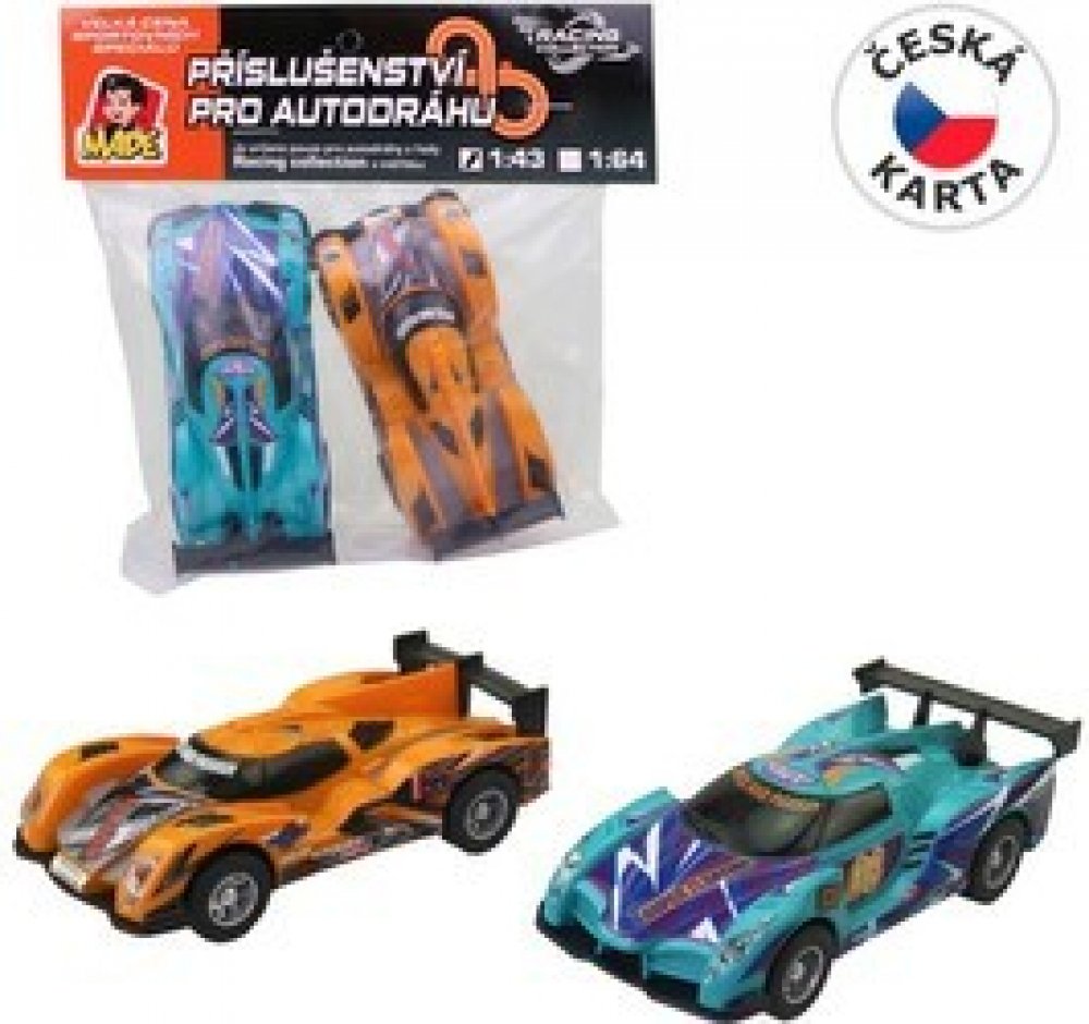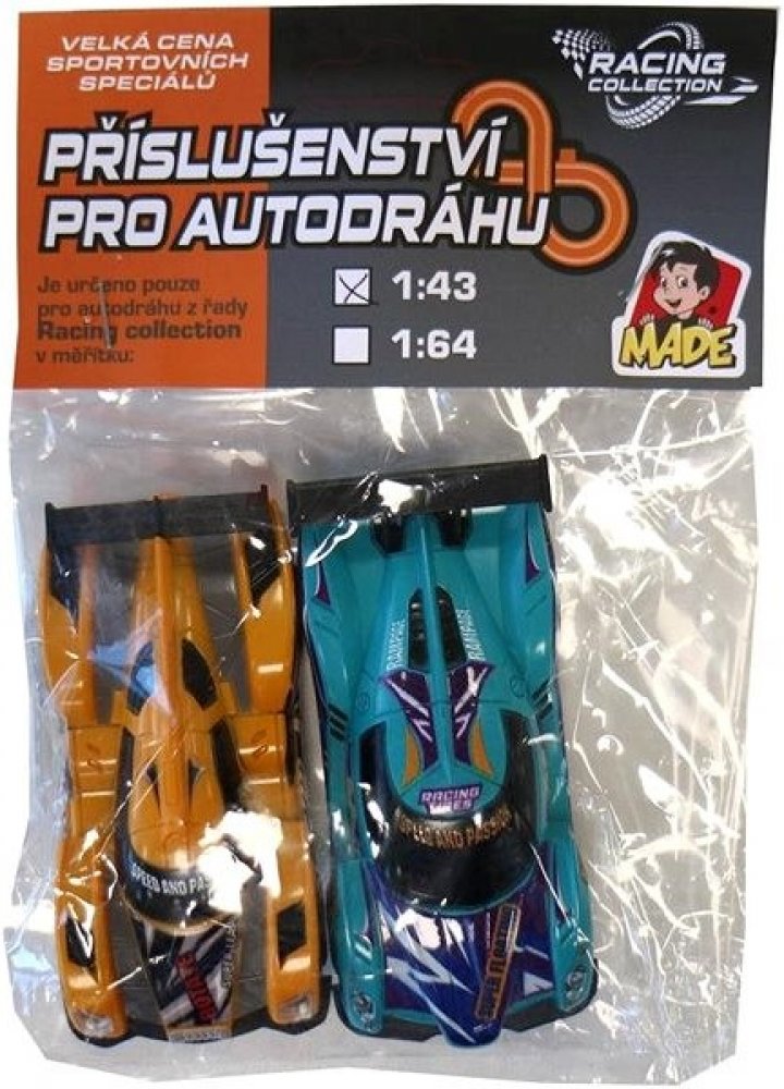 MaDe Autodráha náhradní autíčka 2 ks 1:43 žlutá modrá