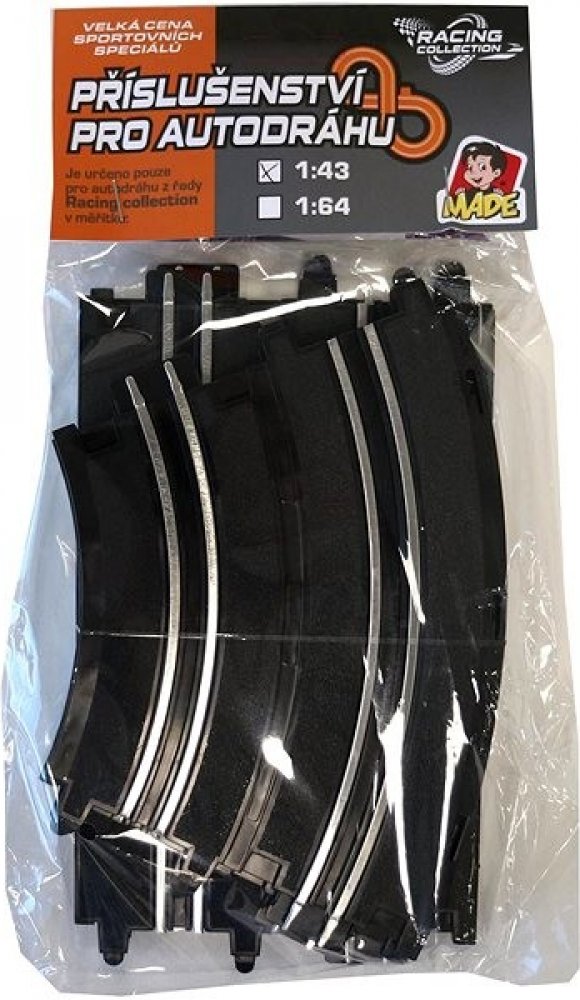 \nAutodráha náhradní díly 4 ks, 1:43. Náhradní díly jsou určeny pouze pro autodráhu z řady Racing collection v měřítku 1:43. V balení jsou čtyři kusy dráhy. Hračka je určena pro děti 3+. Materiál hrač
