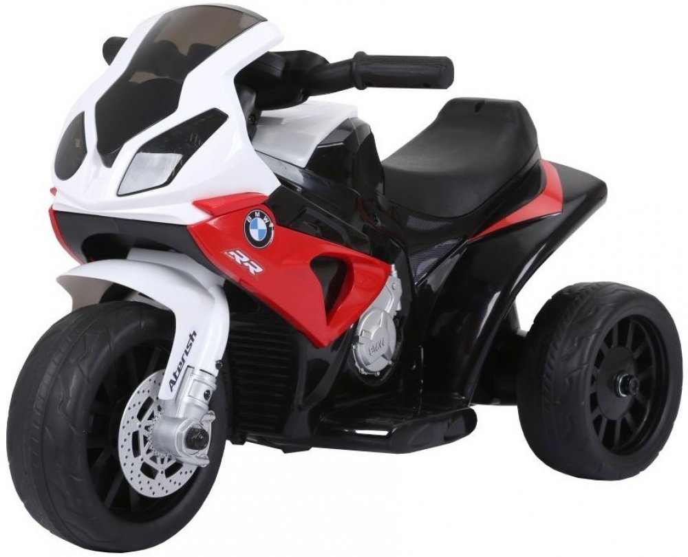 Elektrická motorka s licencí BMW S 1000R obsahuje 1 motor a baterii 6 V/4 Ah. Dětská elektrická motorka s nabíjecím akumulátorem. Nabíjecí doba se pohybuje mezi 8 - 12 hodinami. Po nabití jezdí motorka 1 - 2 hodiny podle způsobu jízdy. Motorka má plastová kola, které zajistí komfortní jízdu. Jízda pouze vpřed. Funkční světlo a hudba.