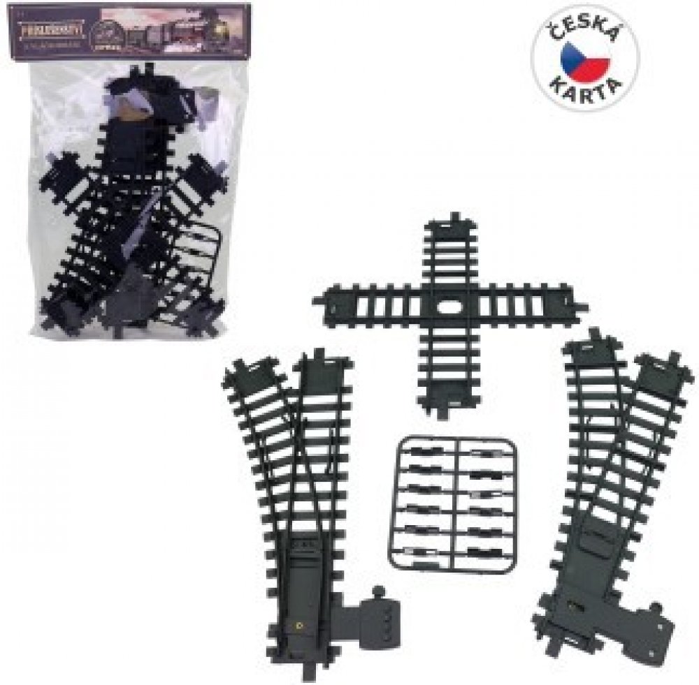 Koleje sada, 22 cm, 1 x křížení, 2 x vyhýbka, spojky. Doplňky k vláčkodráze. Konečně můžeš měnit nebo prodložit trasu kolejí jak tě napadne. Vyber si ty správné doplňky, které potřebuješ. Balení obsahuje 1 x křížení, 2 x vyhýbku a spojky. Hračka je určena pro děti 3+.Materiál hračky je plast. Balení hračky sáček. Produkt je určený pro kohokoliv.