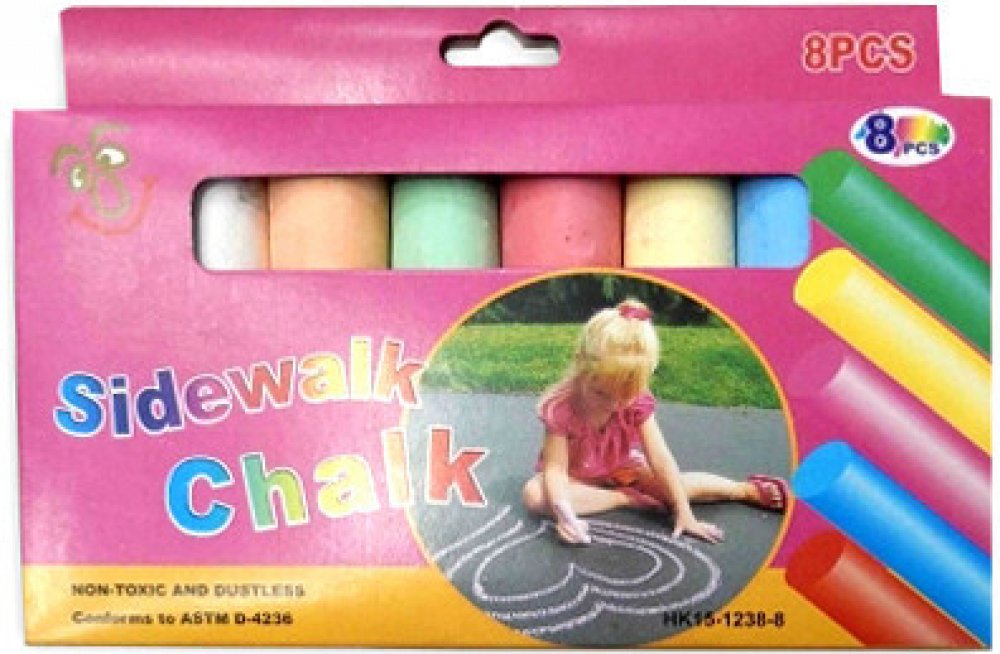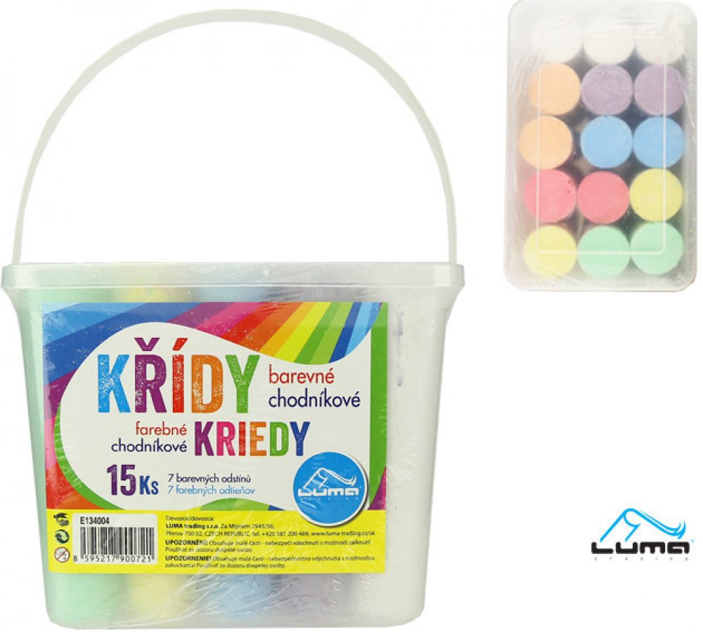Křídy barevné, v balení je 8 ks barevných kříd 11 cm dlouhých o průměru 2 cm.