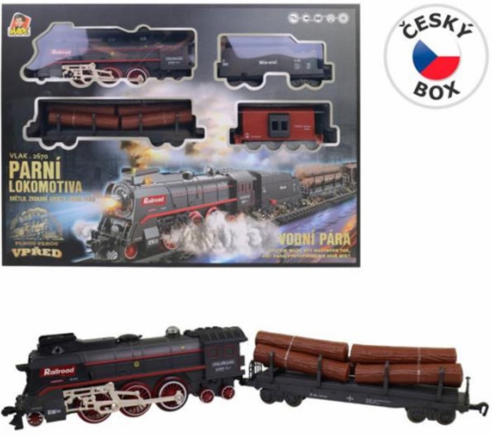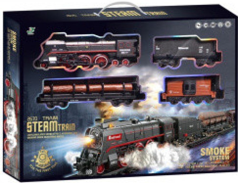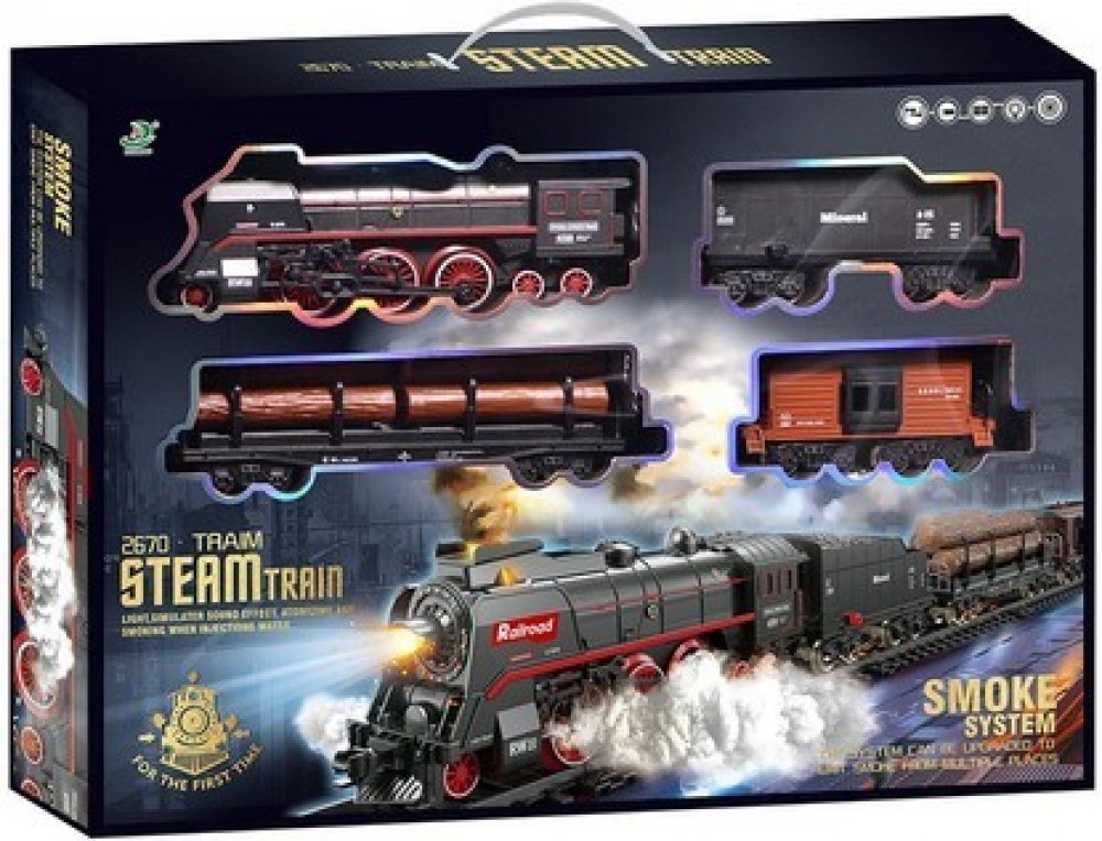 Velkou zajímavostí této sady je efekt páry, která vychází nejen z komína, ale i z podvozku lokomotivy. Dopřejte svému dítěti stát se strojvedoucím vlastního neobvyklého vlaku. Pro zpestření celé hry má vlak zvukové a světelné efekty. Montáž kolejnic je velmi jednoduchá.
