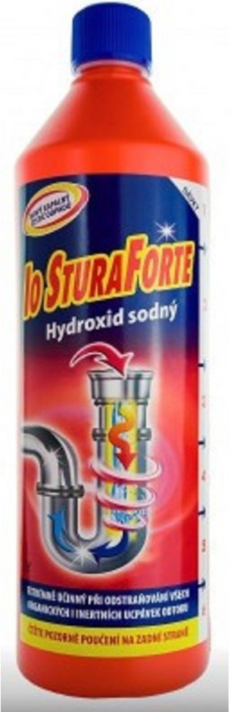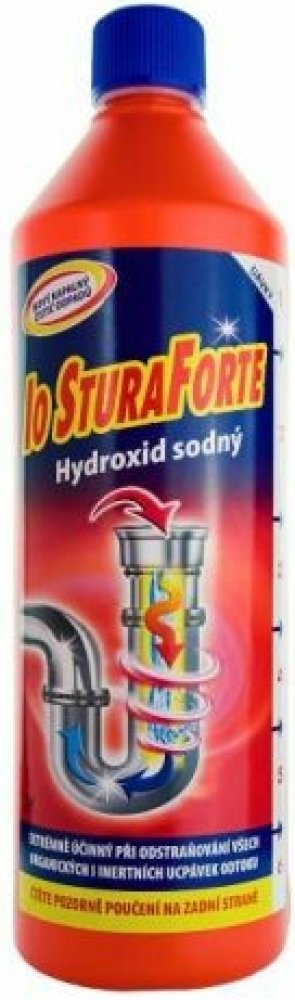 Je na bázi silné koncentrace hydroxidu sodného a díky tomu se stává bezkonkurenční. Jeho použití je jednoduché a snadné, šetrně vyčistí potrubí umyvadel a odpady WC. Díky svému speciálnímu složení je čistič odpadů STURA FACILE Hydroxid sodný 30% extrémně účinný při odstraňování všech organických i inertních ucpávek odtoku, jako jsou zbytky mastnoty, mýdel, vlasů či papíru. V krátké době působí efektivně a do hloubky v dřezech, sprchách, umyvadlech i toaletách. Použití Stura Facile čistič odpadů: Opatrně odšroubujte víčko. V případě čištění částečně ucpaného odpadu nalijte 1 nebo 2 dávky produktu přímo do odpadu, a to i v přítomnosti stojaté vody, počkejte asi 2 hodiny a poté zalijte teplou vodou (ne vroucí). Při čištění úplně ucpaného odpadu nalijte asi polovinu láhve a počkejte 3 – 4 hodiny, pak zalijte teplou vodou. Je-li to nutné, aplikaci opakujte, příp. i s přidáním jedné nebo dvou dávek navíc. Mezi aplikacemi počkejte alespoň 30 minut a po každé aplikaci nezapomeňte odpad proplác