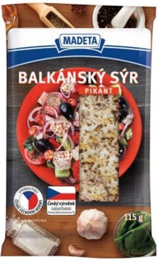 Cena se může v jednotlivých regionech lišit. -- Balkánský sýr je měkký bílý hodně čerstvý sýr z kravského mléka uložený ve slaném nálevu. Zlí jazykové o něm říkají, že je levnější náhražkou sýru Feta, který je charakterově stejný, ALE je vyrobený z ovčího a kozího sýra. No nevěřte tomu. Tyto dva sýry od sebe na první ochutnání rozezná i dítě. Každý je jiný a každý má své příznivce. Varianta pikant je obohacená o koření, které dodá sýru pikantní příchuť tedy chilli, pepř, cibuli a další přísady. O výrobci:Madeta a. s. je česká potravinářská firma zabývající se zpracováním mléka a výrobou mléčných výrobků. Závody firmy zpracovávají 1,5 milionu litrů mléka denně a díky tomu je největším zpracovatelem mléka v ČR. Vyrábí více než 240 druhů výrobků a exportují své výrobky do 15 zemí. Vzhledem k historii značky, která sahá až do roku 1902, znají toto logo u nás opravdu s nadsázkou "všichni".