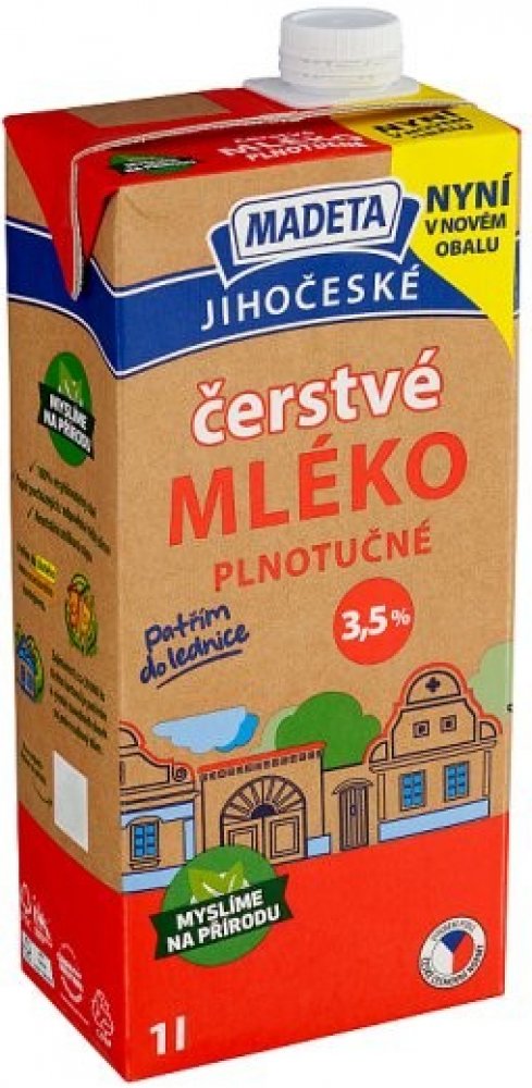 Madeta Jihočeské mléko čerstvé plnotučné 3,5% 1 l