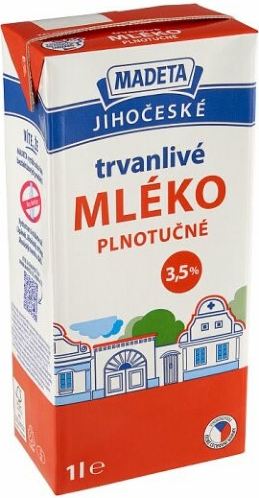 Madeta Jihočeské Trvanlivé plnotučné mléko 3,5% 1 l