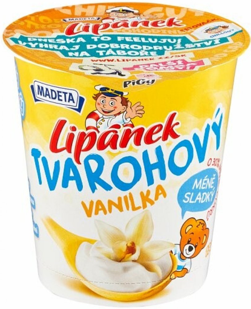 Cena se může v jednotlivých regionech lišit. -- Dopřejte sobě i nejmilovanějším tuto senzační novinku... Madeta pro vás připravila nový Lipánek Tvarohový. Je méně sladký, ale chutná pořád stejně skvěle a to protože jsme zachovali jeho osvědčenou a poctivou výrobu. Více informací včetně zajímavých receptů jsme pro vás připravili na www.lipanek.cz. Lipánek Tvarohový - ten méně sladký