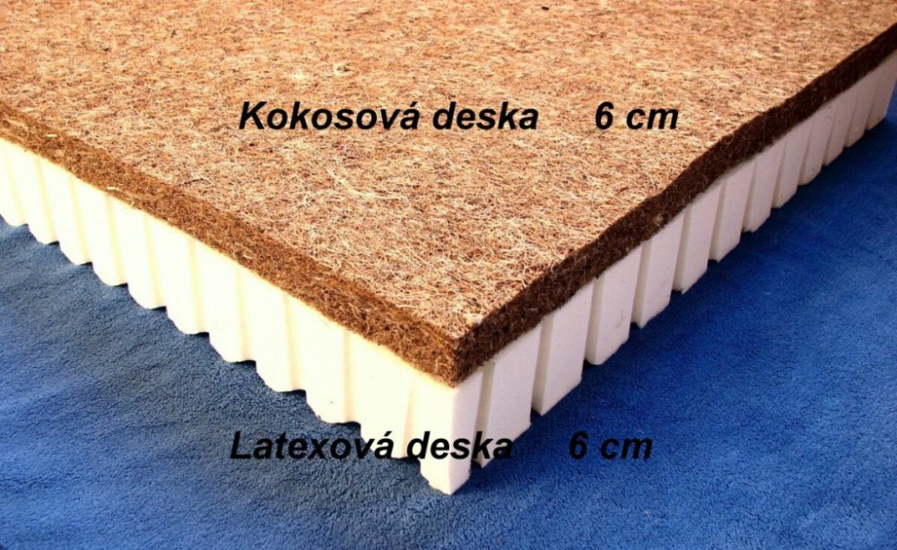 Dětská latexová matrace s kokosovou deskou je vyrobena z přirodních materialů. Matraci tvoří latexová deska o výčce 4 cm a kokosová deska o výšce 3 cm.