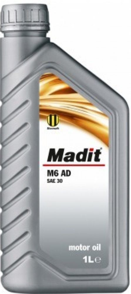 Madit M6AD je určen zejména k mazání starších typů benzinových, výjimečně i nepřeplňovaných naftových motorů, které mají nízké požadavky na užitné vlastnosti maziva. Průmyslové použití (např. náplně kompresorů, nenáročných převodovek, atd.) Je vhodný především pro letní provoz. Výkonové třídy, specifikace: SAE 30 API SC/CB Balení Madit M6AD: 1L Mazací plán MOL