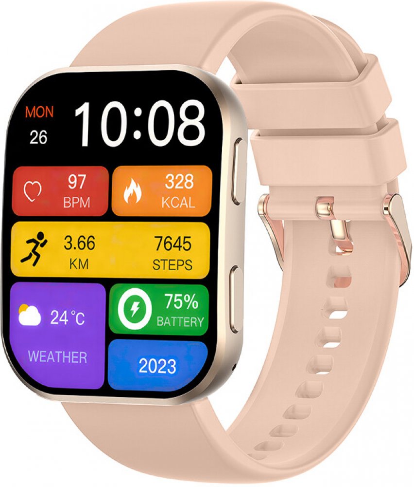 - Notifikace: příchozí hovory, SMS, aplikace (Facebook, Messenger, Instagram, TikTok, Emaily a spousty dalších…), fyziologický cyklus pro ženy, pitný režim.