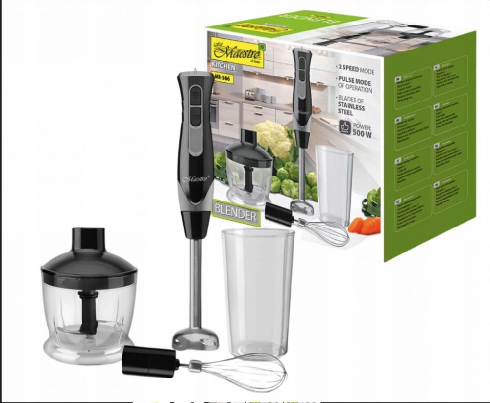 Poškozený obal, výrobek rozbalený za účelem prohlídky. Mixér NOVÝ se sadou vybavení.Maestro Blender MR566