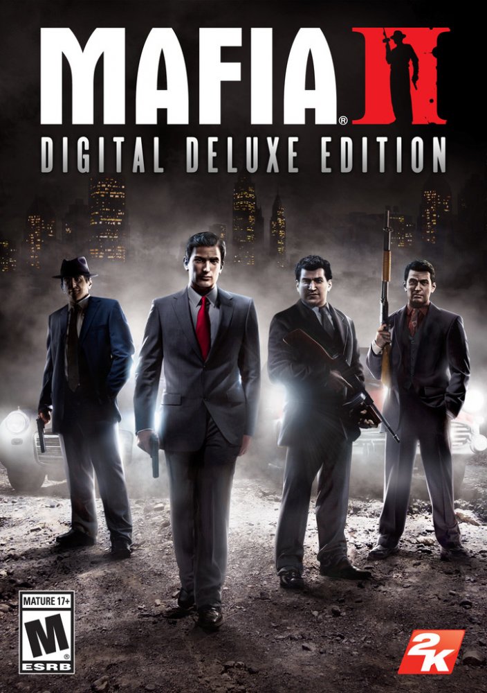 Digitální Deluxe edice obsahuje kromě hry samotné také řadu bonusů: - Made Man Pack: Bezplatný přístup ke dvěma herním balíčkům ke stažení, které vám zpřístupní dva luxusní automobily inspirované dobovými vozy. Vito navíc získá dva „made man“ obleky, včetně klasického smokingu.- Digitální artbook: Život mafiánských rodin Empire Bay zachycený na fotkách ve virtuálním fotoalbu. Digitální artbook seznámí hráče s procesem výroby hry.- Soundtrack nahraný orchestrem: Ponořte se do symfonického mistrovského díla nahraného pražským FILMharmonických orchestrem.- Mapa Empire Bay v digitální podobě: Zorientujte se v ulicích díky digitální mapě města Empire Bay o rozloze 10 mil čtverečních. Poznejte čtvrti města a všechna důležitá místa Mafia II je pokračování zejména v tuzemsku nesmírně oblíbené hry Mafia: The City of Lost Heaven, které vychází po dlouholetém vývoji již pod hlavičkou 2K Czech - přejmenovaného brněnského studia Illusion Softworks (vývojáři původní hry), které bylo v lednu 2008 odkoupeno společností Take 2 a zařazeno mezi další, víceméně samostatně fungující vývojářské pobočky rozeseté po celém světě. Druhý díl příběhově nijak nenavazuje na svého předchůdce (byť vývojáři nevyloučili přítomnost nějakých referencí pro všímavé fanoušky původní hry), děj hry se odehrává v letech 1945 - 1951 ve fiktivním městě Empire Bay, při jehož vytváření se autoři inspirovali především městy New York a San Francisco. Do svého domovského Empire Bay se na konci 2. světové války vrací hlavní hrdina hry, Vito Scaletta. Ten byl po ne zrovna vyvedených zkušenostech s odvrácenou stranou zákona nucen narukovat, což byl jediný způsob, jak se vyhnout vězení. Po zjištění, že jeho zesnulý otec zanechal rodinu v dluzích, je opět nucen nastoupit na dráhu zločinu, a to i díky ne zrovna příkladnému vlivu svého nejlepšího kamaráda z dětství, Joe Barbara. Vlivem událostí jsou oba vtaženi až do mafiánského podsvětí, kde společně prožívají jak vzestupy, tak s tím související nezbytné pády. Hra je konkrétně zasazena do dvou výrazně se lišících období. Pochmurnou zimní scenérii z druhé poloviny 40. let, kdy na většinu obyvatel stále působily dopady války, vystřídá v druhé části hry rozjasněná (ročním obdobím již jarní) první polovina let padesátých ve znamení rychlých aut, technologických novinek a rock’n’rollu. Právě dobové hudby si stejně jako v prvním díle užijete dosytosti - desítky licencovaných skladeb zazní jak z rádií v bytech či barech, tak při jízdě autem.