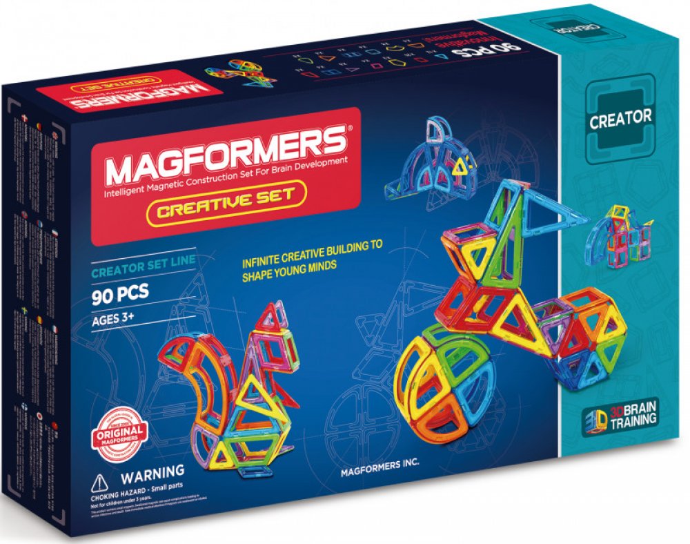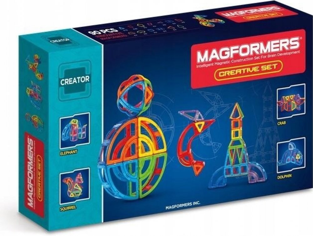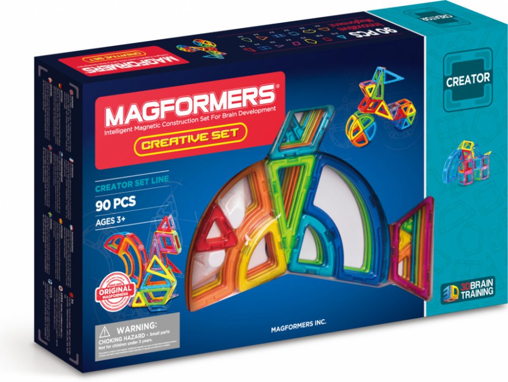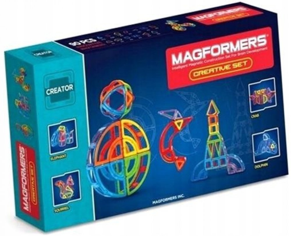 Kreativní magnetická stavebnice Magformers umožňuje sestavovat velké množství trojrozměrných objektů, pomocí dvourozměrných plastových mnohoúhelníků. Magformers procvičuje jemnou motoriku, podněcuje tvořivost, učí děti barvy a základní geometrické tvary.