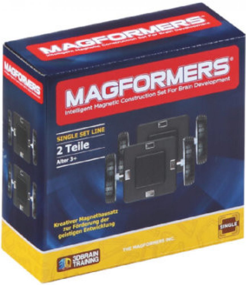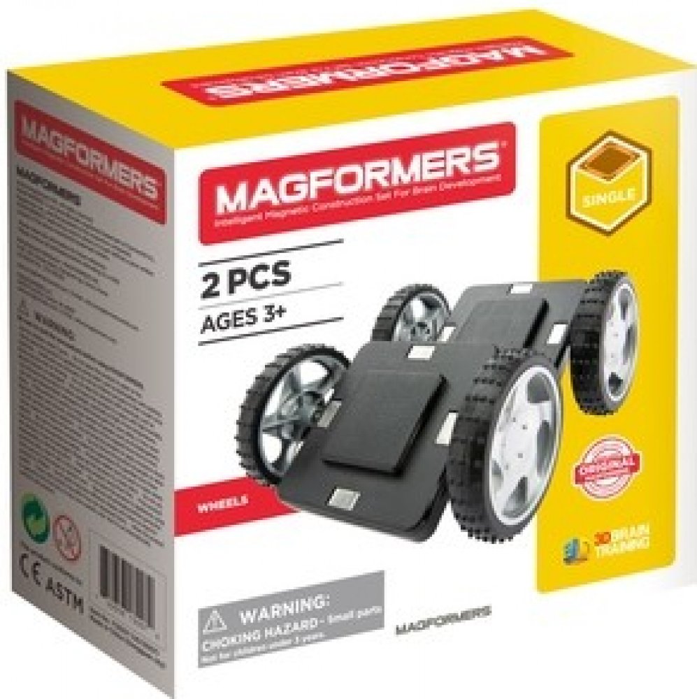 Sada obsahuje dva kusy koleček na podvozkových destičkách, která se jednoduše nacvaknou na samostatné dílky, balené samostatně ve fólii. Nezbytné dílky k sestavení autíček a dalších objektů. Kolečka nelze díky odlišným rozměrům okraje použít pro rozšíření sestav řady XL Cruisers, tj. pro vsazení do tenčích čtverců se stříbrnou metalickou konturou. Všechny stavebnice řady XL Cruisers mají svá vlastní kolečka specif. rozměrů již ve svém základním balení. Vhodné pro děti od 3 let. Počet dílků: 2 Kreativní magnetická stavebnice Magformers umožňuje sestavovat velké množství trojrozměrných objektů, pomocí dvourozměrných plastových mnohoúhelníků. Magformers procvičuje jemnou motoriku, podněcuje tvořivost, učí děti barvy a základní geometrické tvary. Rozměry dílků a vhodně volené tvary zajišťují maximální možnou bezpečnost hračky . Materiál, z kterého je stavebnice vyrobena splňuje nepřísnější hygienická a zdravotní kritéria. Dílky jsou dostatečně velké, nelze je spolknout a jsou prakticky nerozbitné. MAGFORMERS lze velmi dobře kombinovat i se známou magnetickou stavebnicí Geomag. ilustrační video magnetické stavebnice Magformers