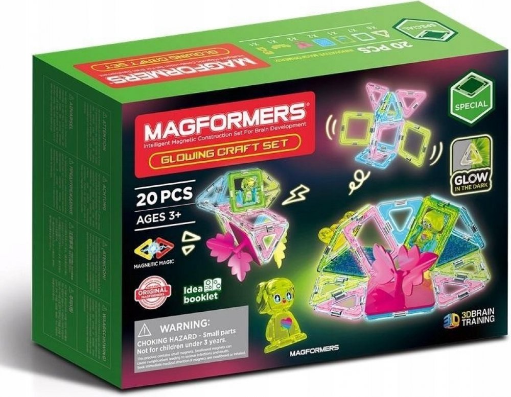 Objevte kouzlo tvoření s Magformers svítícím setem! Tato sada obsahuje 20 magnetických dílků a vkládacích doplňků, které umožňují nekonečné možnosti stavění. Speciální Glow dílky jsou exkluzivní pouze pro tuto sadu, což ji činí ještě unikátnější.