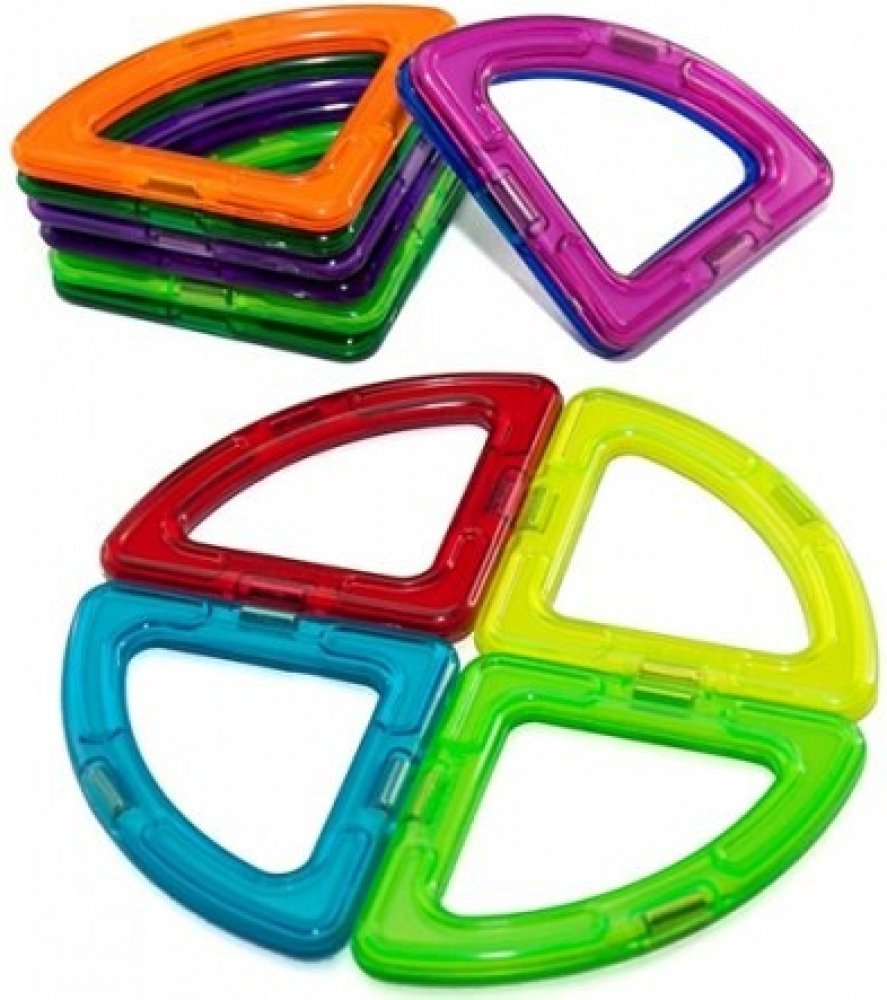 Sada 12 kusů kruhových úsečí se 4 magnety. Barvy dílků dodáváme dle skladových zásob. Počet dílků: 12 Kreativní magnetická stavebnice Magformers umožňuje sestavovat velké množství trojrozměrných objektů, pomocí dvourozměrných plastových mnohoúhelníků. Magformers procvičuje jemnou motoriku, podněcuje tvořivost, učí děti barvy a základní geometrické tvary. Rozměry dílků a vhodně volené tvary zajišťují maximální možnou bezpečnost hračky . Materiál, z kterého je stavebnice vyrobena splňuje nepřísnější hygienická a zdravotní kritéria. Dílky jsou dostatečně velké, nelze je spolknout a jsou prakticky nerozbitné. MAGFORMERS lze velmi dobře kombinovat i se známou magnetickou stavebnicí Geomag. Ilustrační video magnetické stavebnice Magformers