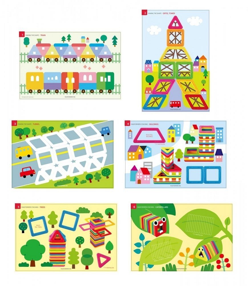 Součástí balení jsou výukové karty, podle kterých se děti naučí stavět jednoduché domečky a geometrická tělesa. Modelové předlohy slouží k navedení dětí a rodičů k vymýšlení nových tvarových kombinací a schematických modelů.