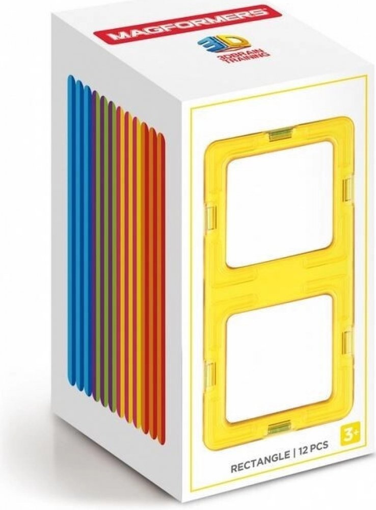 Sada MAGFORMERS "Obdélníky" obsahuje 12 různobarevných magnetických obdélníků balených samostatně ve folii. Tento tvar se používá především pro zpevnění základů staveb, rychlejší a pevné rozšíření konstrukce do výšky a zejména jako tuhý prvek podvozku pro autíčka a stroje na kolečkách, které se dají k obdélníkům šikovně připojit. Kratší strana měří obligátních 6,4 cm, delší strana pak 13 cm.