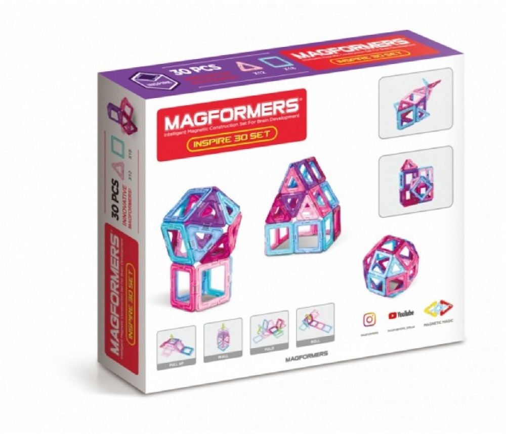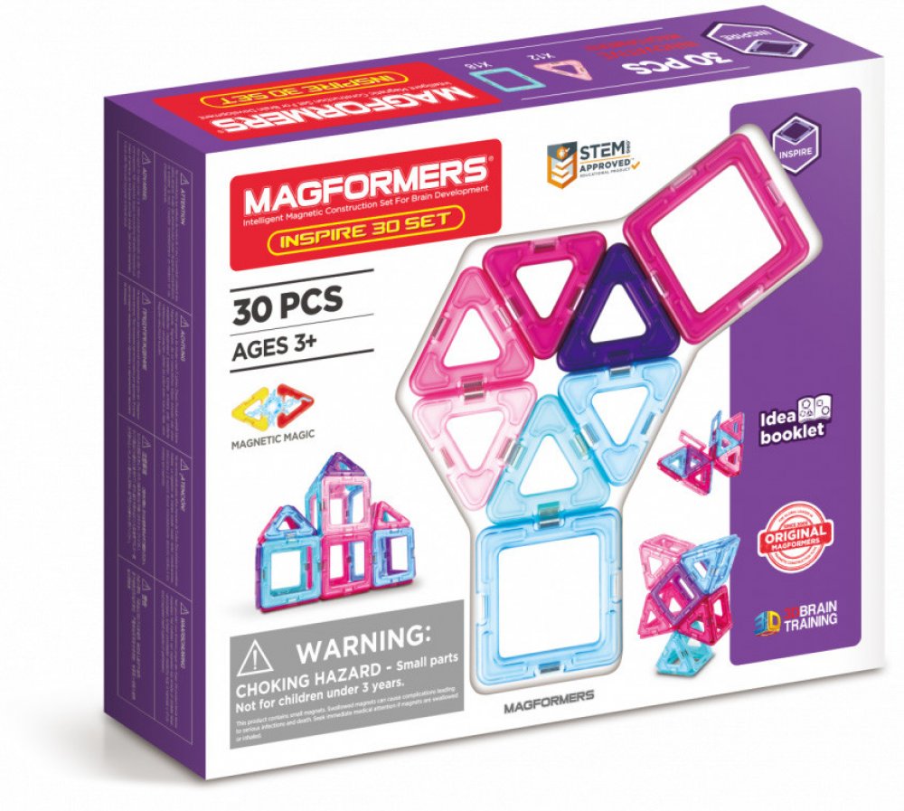 Obdoba klasického setu Magformers-30 Rainbow v pastelovém barevném provedení. Klasická základní kolekce v měkkých pastelových barvách určená především pro malé slečny. Balení obsahuje 18 čtverců a 12 trojúhelníků v pastelových barvách - poloprůhledné provedení. Počet dílků: 30 Kreativní magnetická stavebnice Magformers umožňuje sestavovat velké množství trojrozměrných objektů, pomocí dvourozměrných plastových mnohoúhelníků. Magformers procvičuje jemnou motoriku, podněcuje tvořivost, učí děti barvy a základní geometrické tvary. Rozměry dílků a vhodně volené tvary zajišťují maximální možnou bezpečnost hračky . Materiál, z kterého je stavebnice vyrobena splňuje nepřísnější hygienická a zdravotní kritéria. Dílky jsou dostatečně velké, nelze je spolknout a jsou prakticky nerozbitné MAGFORMERS lze velmi dobře kombinovat i se známou magnetickou stavebnicí Geomag. ilustrační video magnetické stavebnice Magformers